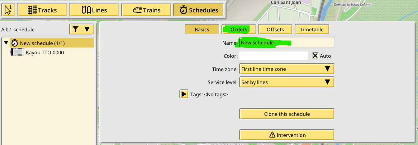 1.13: A manual orders train has a list of orders 1.14: A Schedule has a list of orders. A train is assigned to a Shift of that Schedule to run the list of orders.