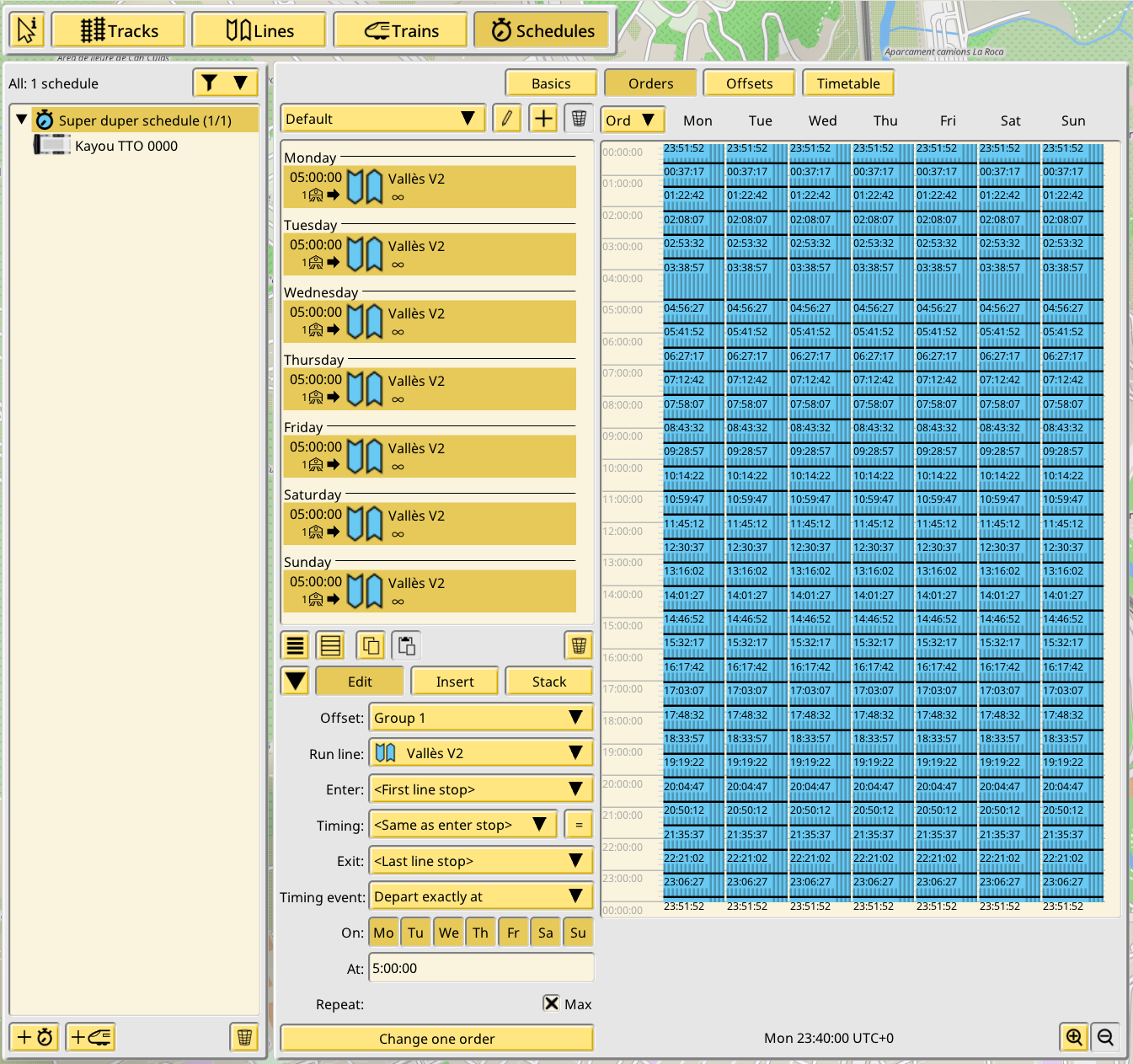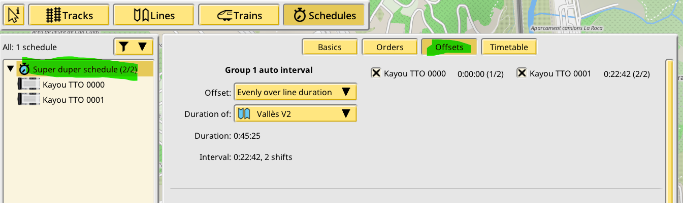 1.13: A manual orders train has Group options to auto interval the autocopier train orders 1.14: A Schedule has an Offsets tab, which has Group options to auto interval the Shift train orders