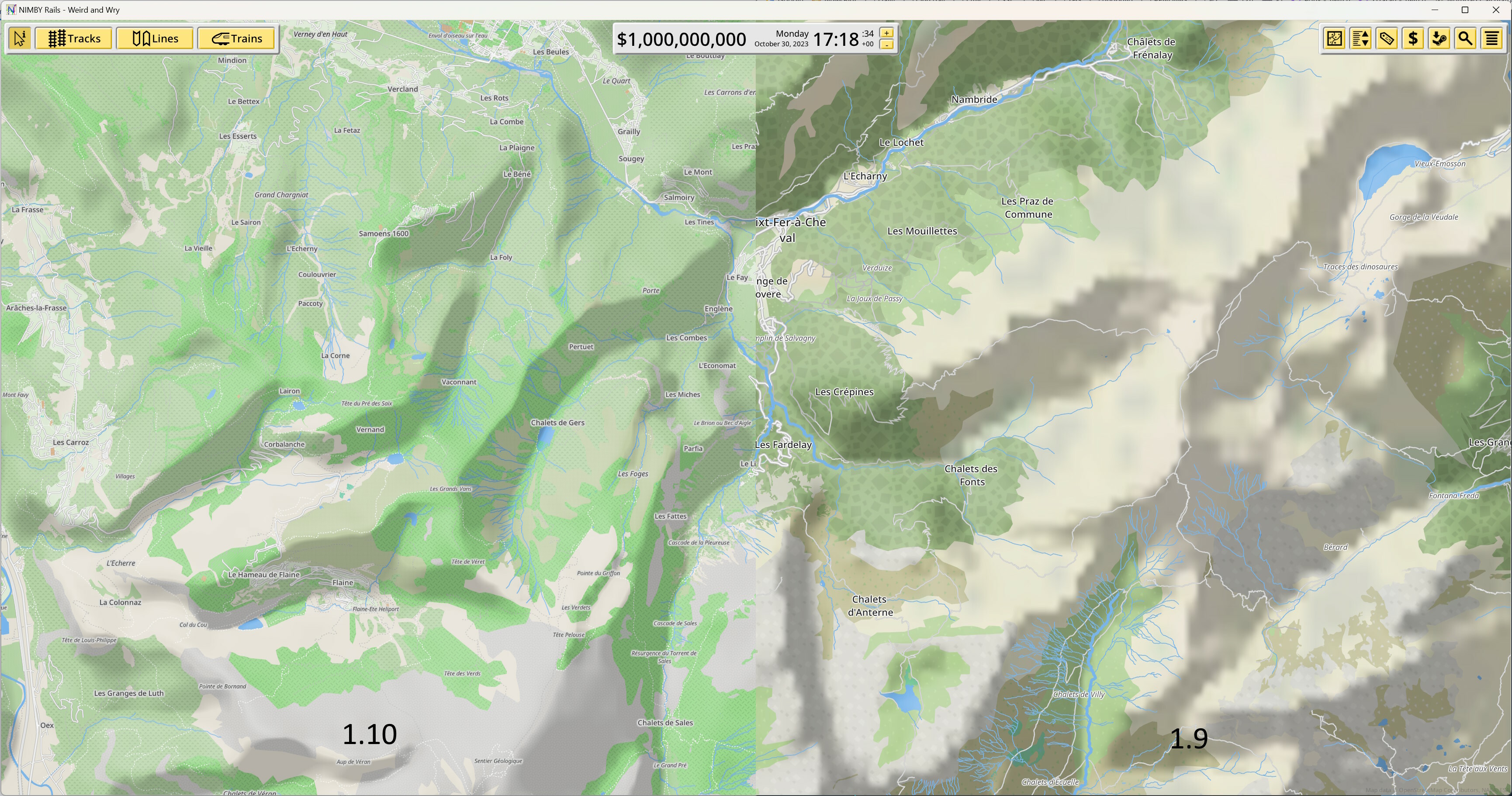 All the data gathering and processing tasks for the new map in 1.10 are now done, along with most of the work required to display them. Game size has increased a little, but I think it's worth it given the extra quality and map features. The new map rendering fixes several long standing glitches and bugs, so say goodbye to visible tile seams and spiky road corners. OSM ways are now rendered with correct layering. The new population layer has increased in resolution, almost down to single buildings. There's still some work left to do, specifically to enable OSM style mods, but 1.10 is way past the halfway point at this moment. https://carloscarrasco.com/nimby-rails-september-2023/
