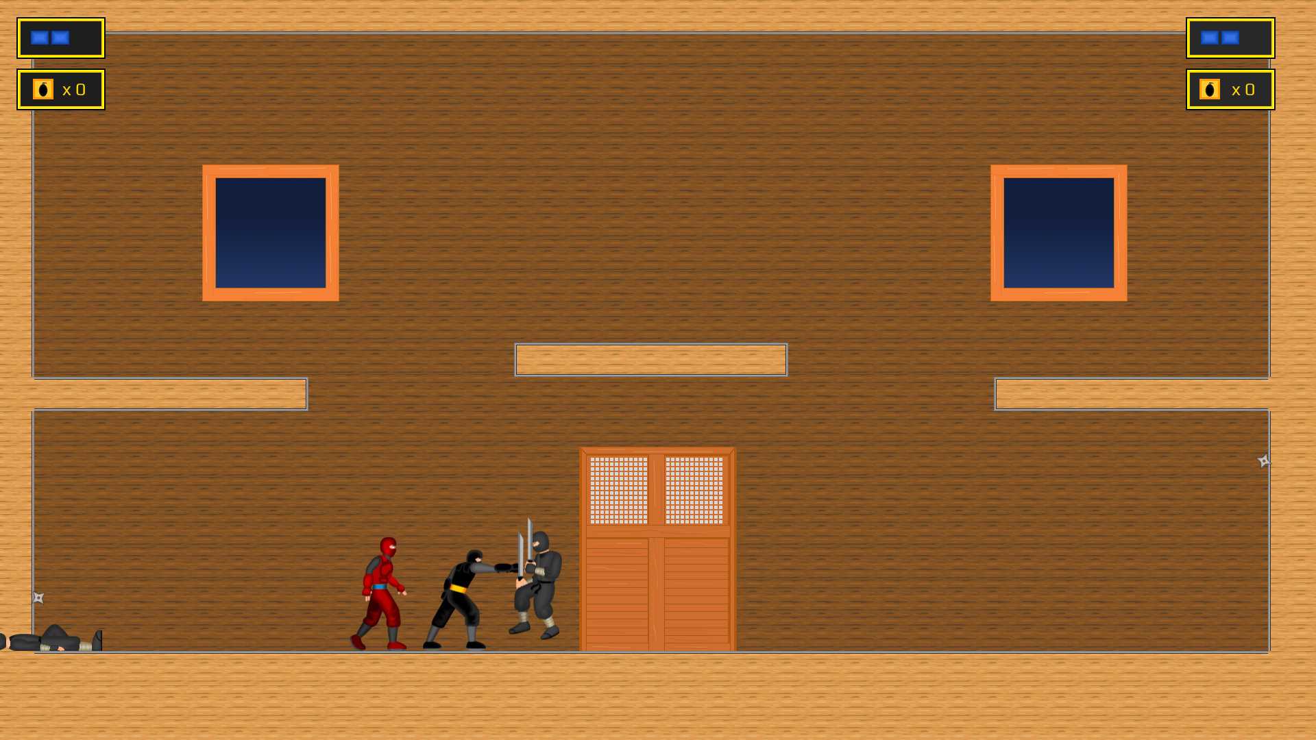 On Versus Mode, you can choose 8 stages, number of grenades for the players and if the shurikens and grenades will have collision or not.