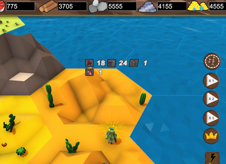 When you in a King mode now you have an icon that changes when you look at resources, interactive buildings, your units, enemies. Added task canceling in the town hall, barracks, fort, etc.