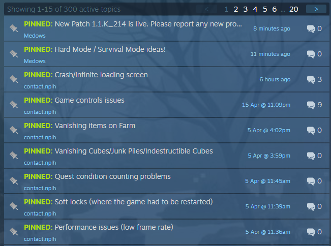 If you have any kind of problems with game do not loading / crushing / missing items / broken saves just go here so we can help you: https://steamcommunity.com/app/1472660/discussions/0/3184612220385568801/