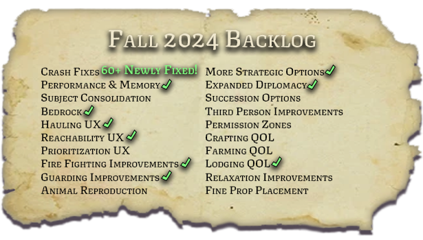 We didn't post a Kingdom Crier with the launch of v0.30.1, the last Minor Update, so we wanted to include those notes here in-case you missed them.