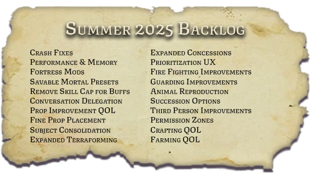 Some new entries here - including Fortress Mod support, Savable Mortal Presets, and allowing Buffs to exceed Skill Caps. We think these changes will better round out the whole experience as we head towards 1.0.