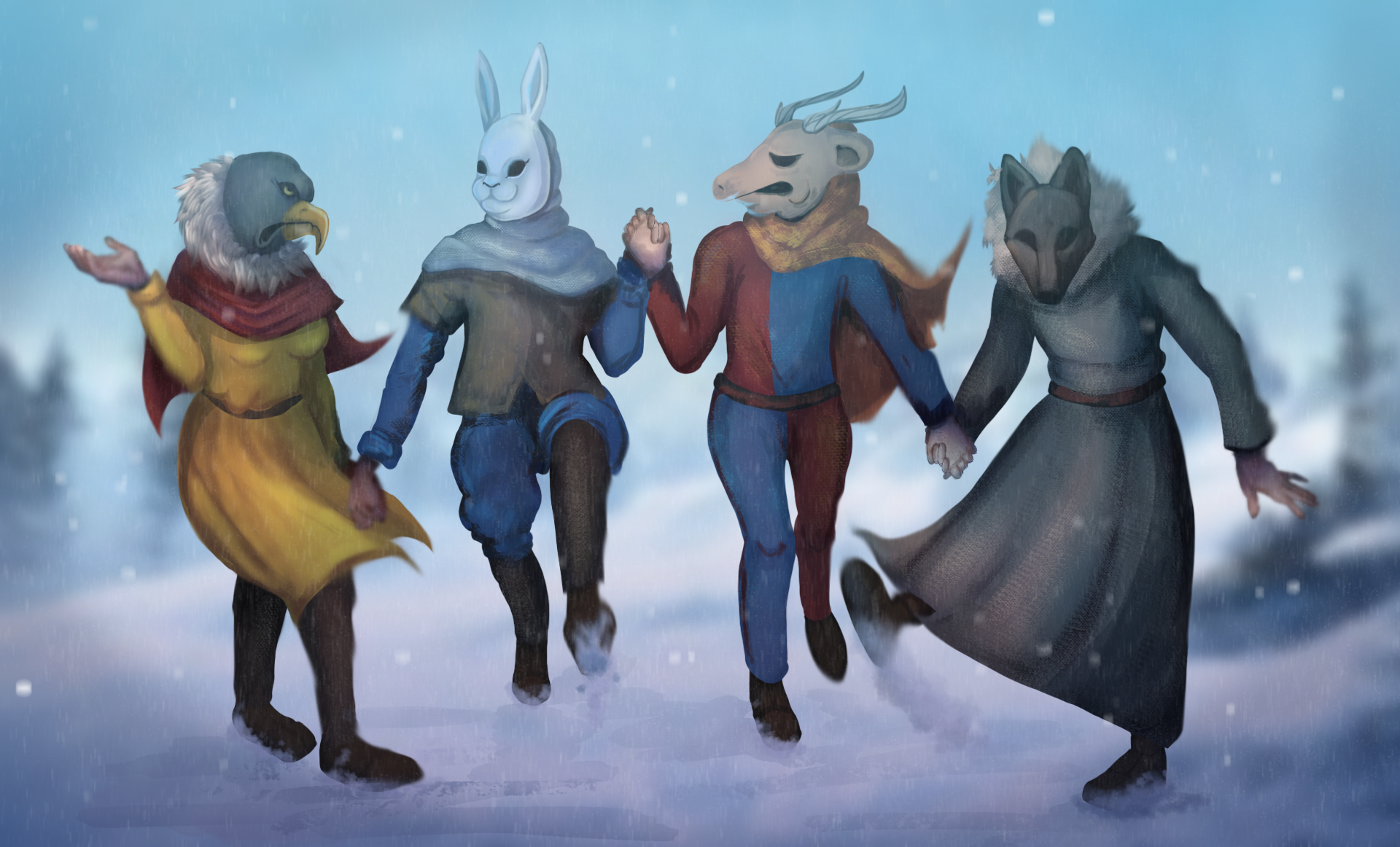 The history of mummers in Europe dates back at least to Ireland in 1172. Already then it connects them with Christmas. We also have confirmations of the existence of the custom from England of the thirteenth century. More recent sources mention this game also in continental Europe, so we recognize that mumming could probably have been cultivated also in France, and especially as close to Gascony as the place of action of Noble’s Life. Yes, this is also our inspiration for in-game events.