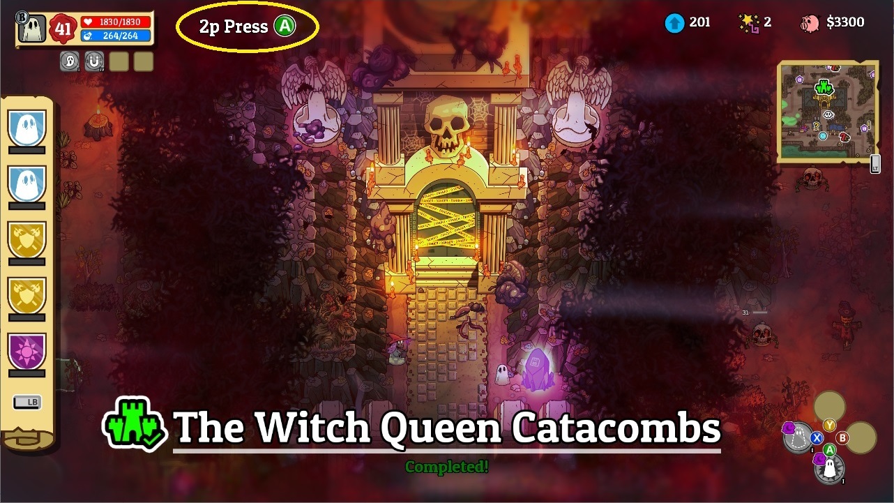 New Feature: Local Co-op support added. Change how controllers are assigned using the new Assign Controllers screen, accessed via the Controls menu New Feature: Full Japanese language support Performance: Lighting and graphical effects have been updated to help improve performance on slower machines Performance: Some art pieces with small amounts of alpha have been set to use binary alpha. Other art pieces with large amounts of alpha have been “cut out” to reduce overdraw Improvement: Added reminder of how to lock direction to the archery range challenge Improvement: Minor tweaks to text in the opening parts of the game, to improve onboarding of new players Bug fix: Fix to stop players from entering Secret Corp. dungeon without first opening the Star Door Bug fix: In multiplayer, familiars could sometimes freeze when the player who summoned them died Bug fix: Improve the selection of teleporters when the map is at farther zoom levels Bug fix: Some ability cooldowns could be reset by using quickswap Bug fix: Quick swapping while using Tempest Barrage ability could cause the player to become stuck in a slow walk Bug fix: Familiars could sometimes leave a blocking hull behind when they died Bug fix: Fixed Moletopia dungeon hud popup not appearing in some circumstances Bug fix: Nostramagus Museum dungeon quest had incorrect icon Bug fix: Cool Witch’s “!” icon would sometimes not clear after beating her in the race Bug fix: Plugged several small gaps in level geometry that players could fit into with small forms and potentially become stuck Bug fix: Fix to Dark Nest arena to prevent second player from dying when spike walls were raised Bug fix: Fixed Marty Joe tutorial scenes where second player could die on spike walls Bug fix: Fixed players getting teleported when they changed forms within Octavia’s lab Bug fix: One player entering or exiting an interior just as the other player initiated a conversation/cutscene could break the cutscene in some circumstances Bug fix: Improved the way “Boo” ability draws with respect to other objects in the world Bug fix: Fix for some NPCs being pushed by certain enemy attacks Bug fix: Dungeon mods text could overlap dungeon title info in some languages Bug fix: Purchasing all items from the second page of the Shop could cause a crash Bug fix: Adjusted hulls on the Cauldronator 2600 so that larger forms can get on and off it more easily Bug fix: Using the “Steele Plated” passive during Laura’s final Knights Guild quest could cause the game to crash Bug fix: Fixed issue with thieves guild questline becoming incompletable if player died or quit between providing the password and collecting their stars Bug fix: Fix for “Nobody Saved the World” achievement not popping for some users Bug fix: Fix for total playtime calculation not being correct in some situations Bug fix: Fixed possible soft lock in the final Thieves Guild quest Bug fix: Client was unable to quit the game when certain tool-tips were on screen. They can now open the pause menu to quit in this situation Bug fix: Blocked off Dark Expanse side quest area once it has been completed Bug fix: Fix for players becoming permanently blocked from entering the Clank dungeon Bug fix: Fix for rare crash when fighting the Secret Corp final boss Bug fix: Fix for potential game freeze when using the teleporter in the Dark Nest dungeon