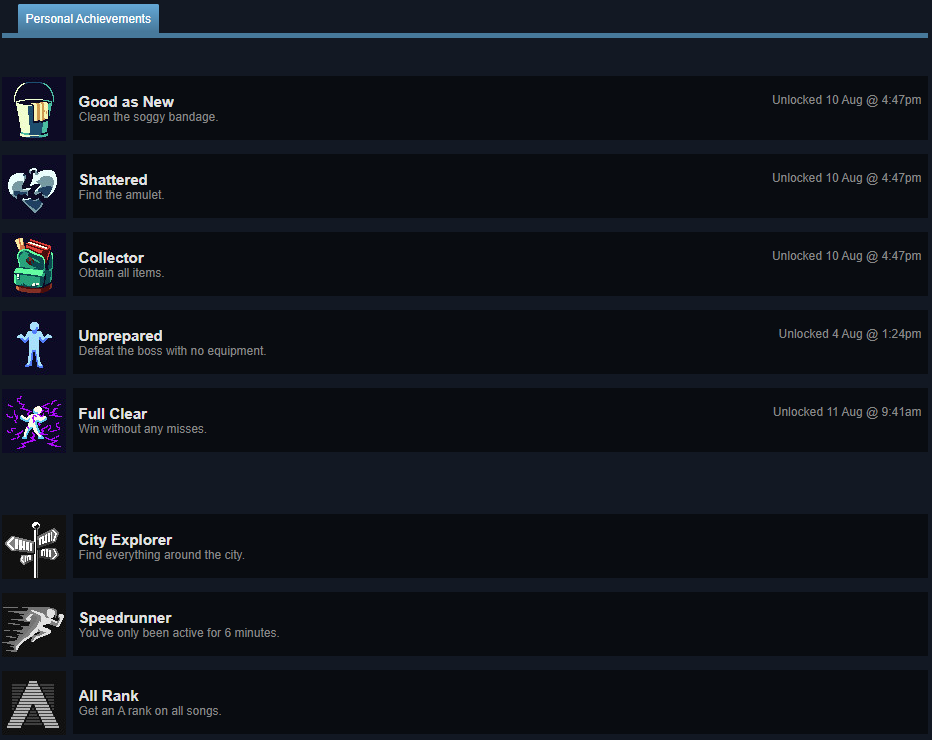 Nocturne: Prelude now has 17 Steam achievements! They provide a mix of challenges, some which will require you to play the game a little differently.