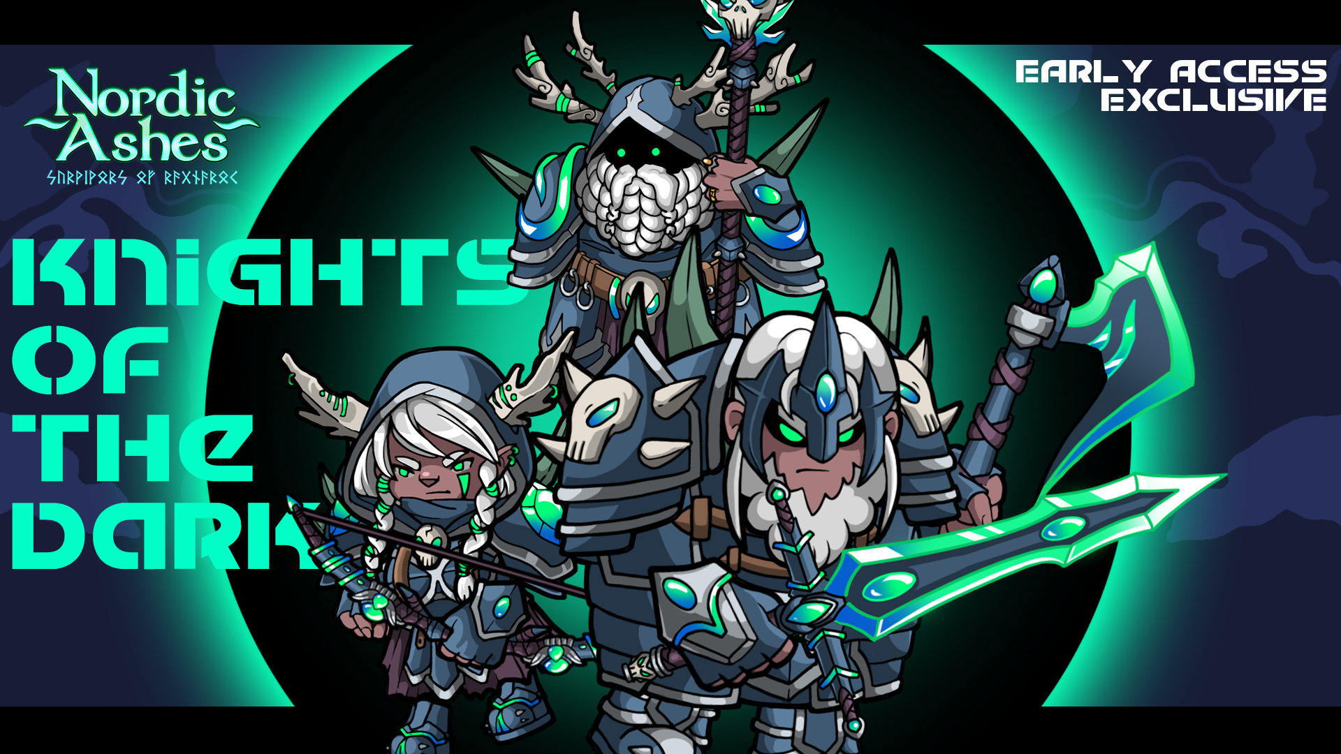 To celebrate the Early Access release we have created 3 themed skins for Axeldör, Thyra and Hafgrim! Welcome the Knights of the Dark! They will be legacy skins, only available during the Early Access!