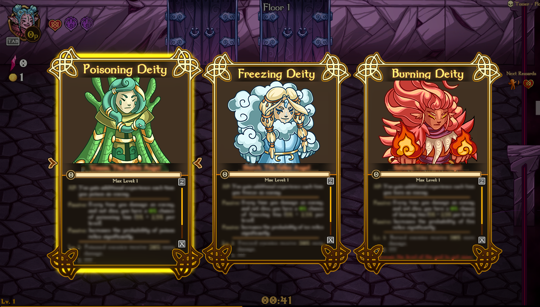 You will be blessed by a deity of your choice. This way, if you are blessed with the Fire Goddess, for example, more fire relics will appear. This means more synergy possibilities and extra damage from your god or goddess of choice!