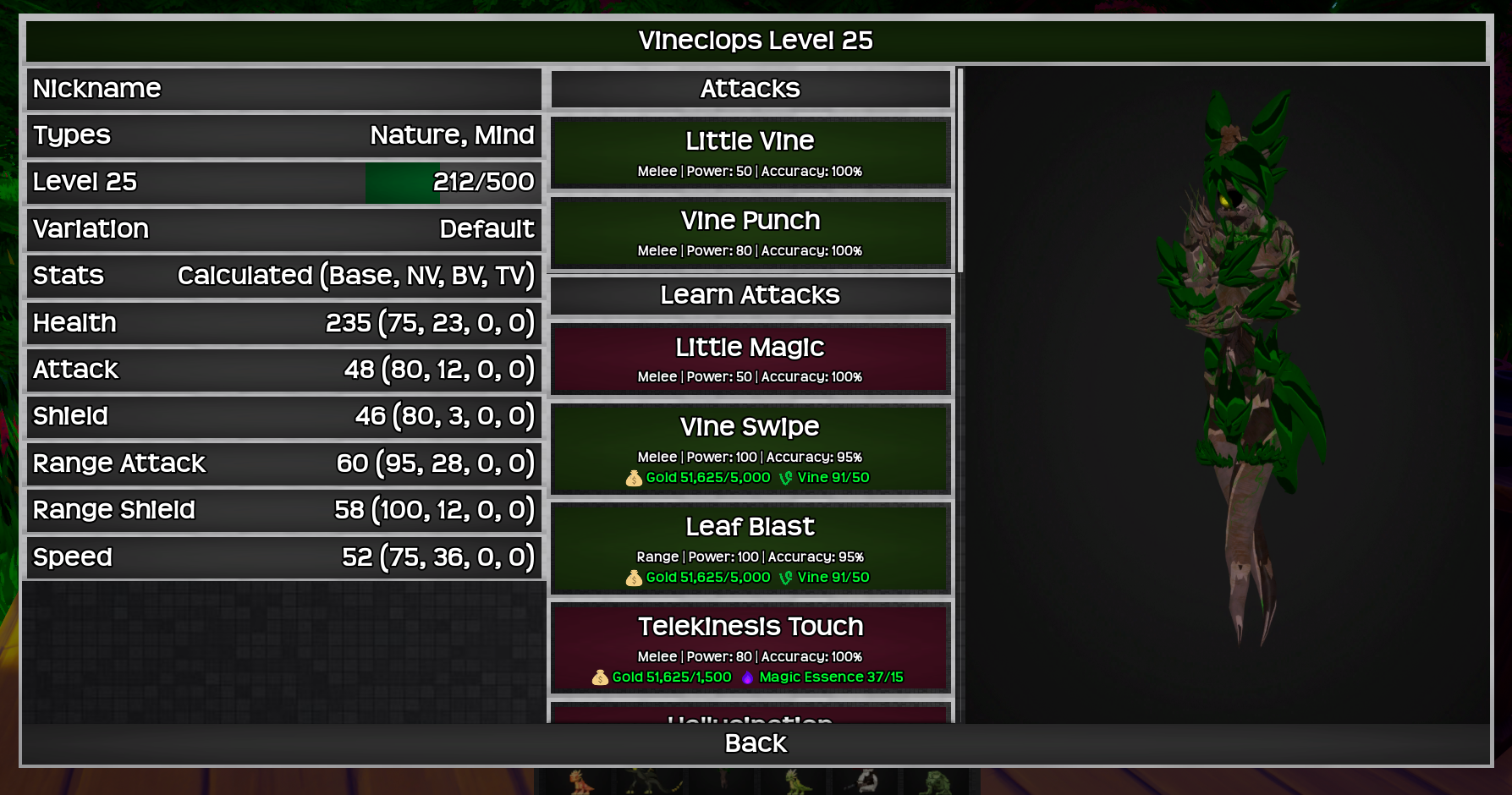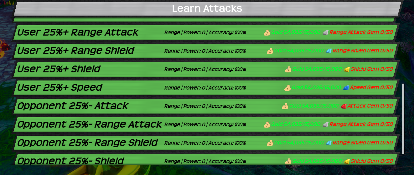An attack can be upgraded up to 5 times using resources, each upgrade will add 5 to it's power. Added new resources that randomly drop from any Norpons and are used for upgrading. - Runes