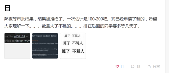 我尝试过一次性申请2000枚和500枚,被拒绝了...