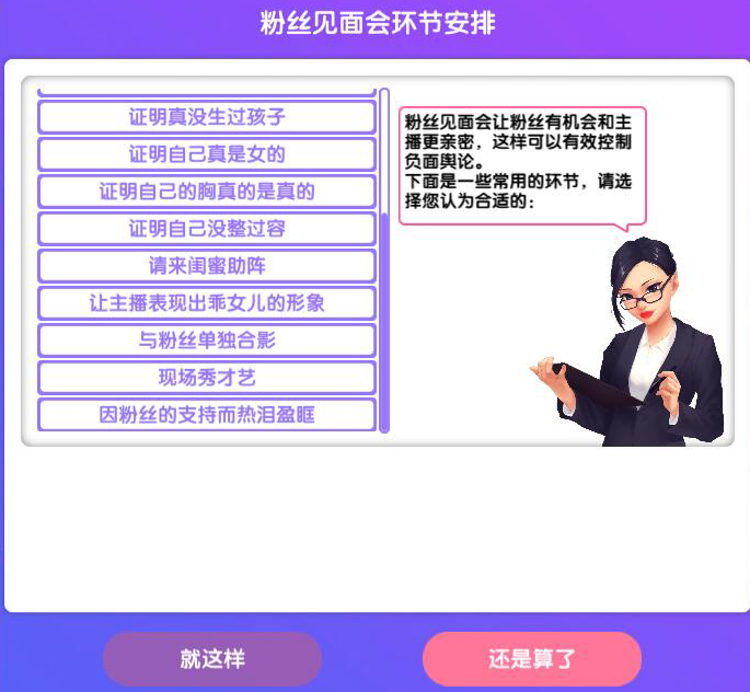 首先,我们添加了大量的新的随机事件,现在每个节目都有其对应的专有随机事件了!