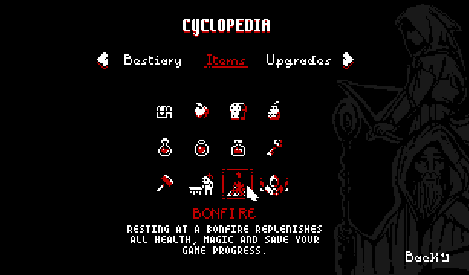 Added: Cyclopedia (encyclopedia) You can find here info about Monsters, Items and Power-Ups.
