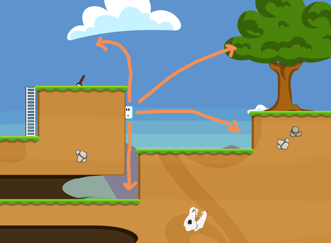 Cleaned up a couple pain points with the "Watch that first step!" level. There were too many ways for Nummels to die in annoying ways. I made it so that Nummels can't accidentally fall off the left side of the start point, and you no longer have to worry about Nummels falling into the water near the secret exit. That water is there so the player has a way to respawn themselves if they get stuck down there.