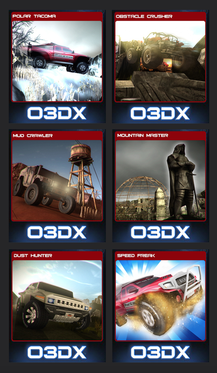 O3DX is an offroad racing and physics obstacle game with a whole new approach. It blends the fun factor and playability of side scroller racing games with the artistic splendour of free roam full 3d games that utilise cinematic camera angles. O3DX is the first game to employ this new type of genre.