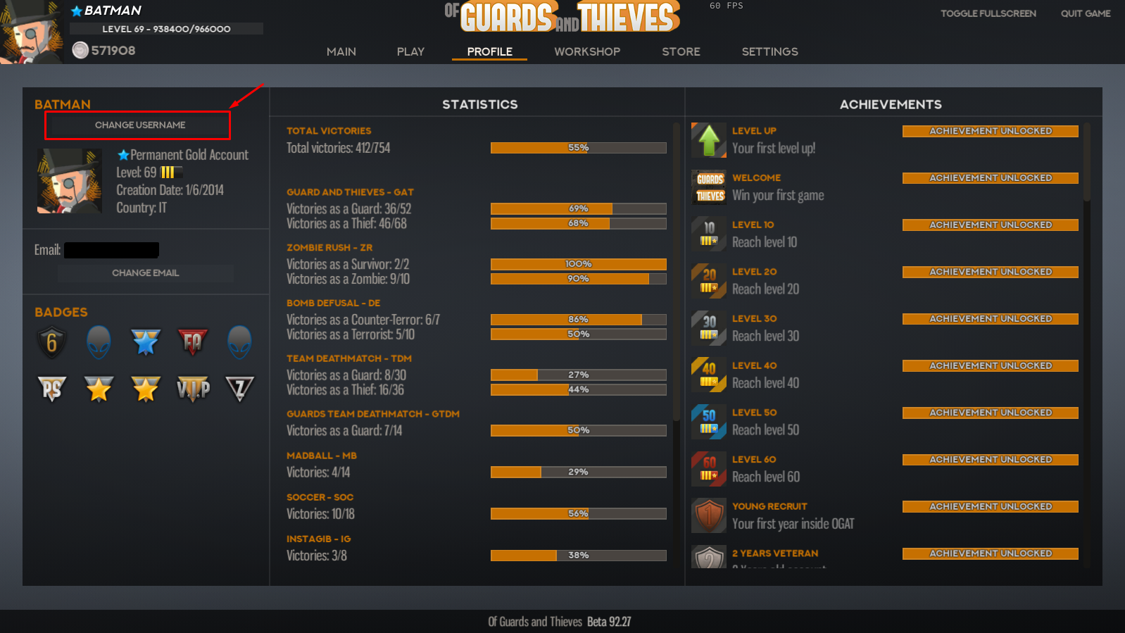 Of Guards and Thieves - Update 92.27 - In-Game Username Change - Shooting Range and CLNG_08 Map - Fix and Class Unlock Progression Survey