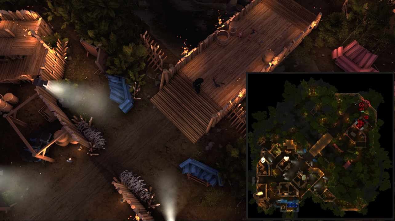 Quick map description: River Village is an unusual map, is set on a rural jungle place and there are no interactive lights, the ambient is mostly lit by torches and a few static electric lights. This time the Guards team will spawn in the bottom part of the map. Movements develops diagonally with only three entrances in the fortified area.