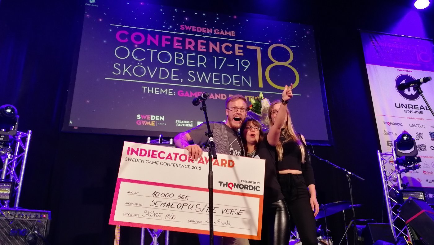 In case you didn’t see us shouting about it all over social media:Off Grid won the Indiecator Award at Sweden Game Conference!