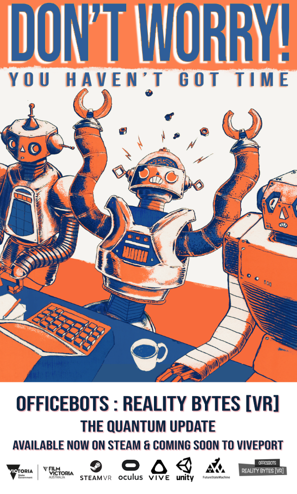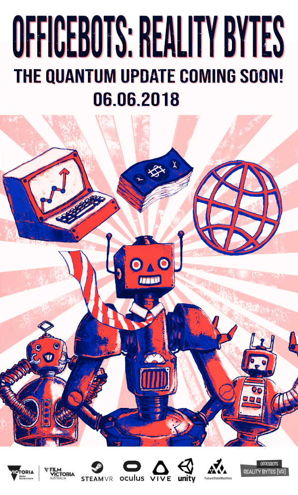 FutureStateMachine is excited to announce the Official Release Date for OfficeBots: Reality Bytes [VR]. You'll be able to buy it on SteamVR for HTC Vive on 22.08.2017. Make sure you tell all your friends and add it to your WISHLIST now!
