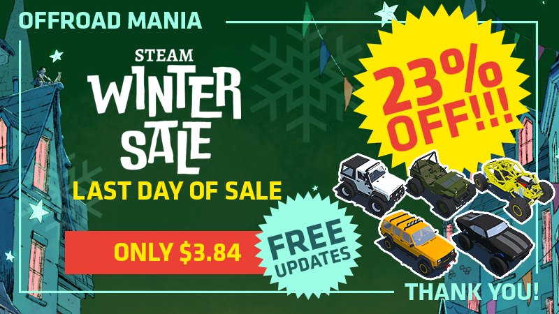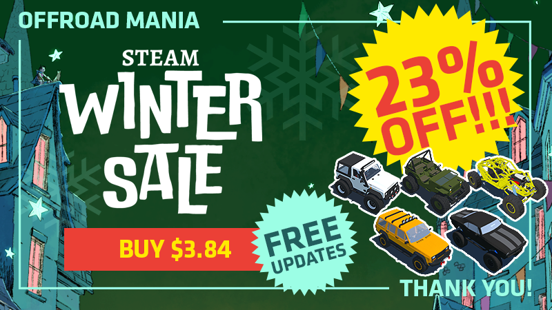 Now you can buy Offroad Mania with our SPECIAL DISCOUNT 50% (JAN 14 — 28, 2023).