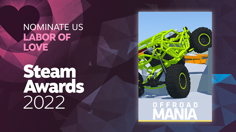 If you like Offroad Mania, nominate us in "Labor of Love" on Steam. Thank you.