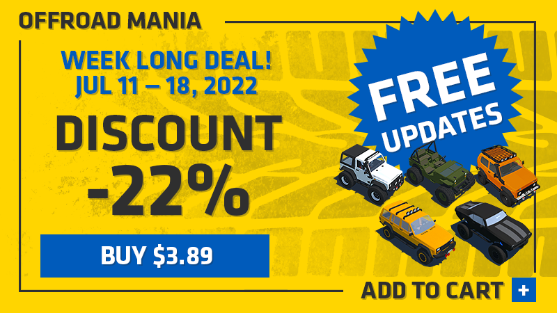 You can support us and buy Offroad Mania with our special discount 22% (JUL 11—18, 2022).
