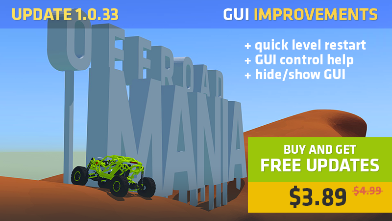 Offroad Mania 1.0.33 updates: + quick level restart + GUI control help + hide/show GUI