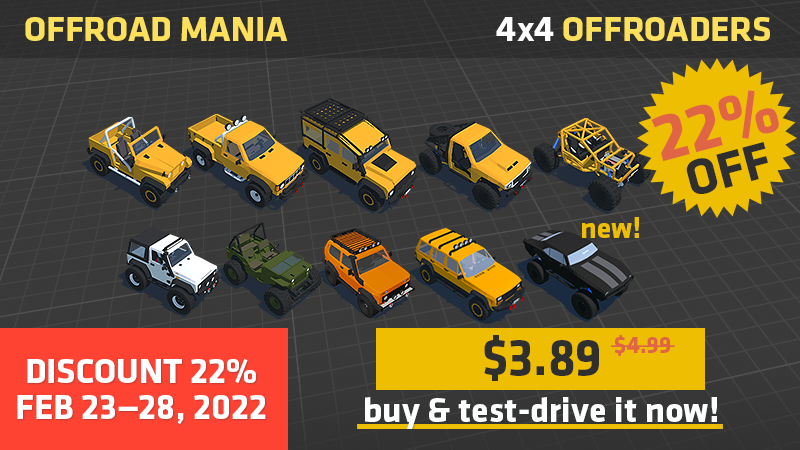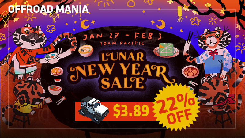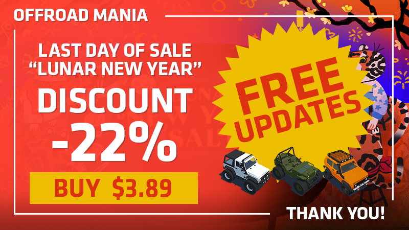 Today (Feb 3, 2022) — is the last day of sale "Lunar Sale 2022" and your last chance to buy Offroad Mania with special price with Discount 22% for only $3.89! (*or less for some regions)