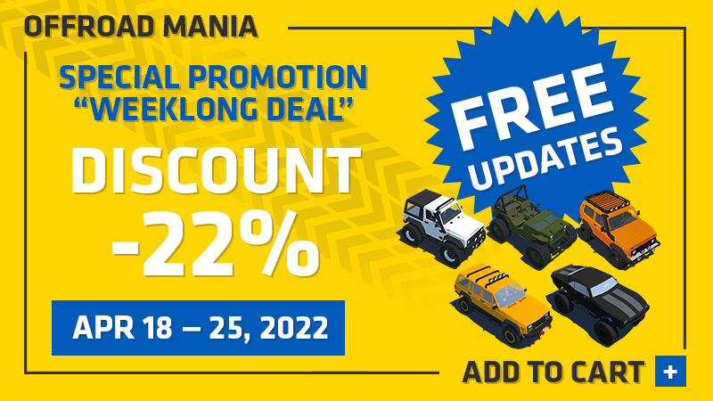 You can support us and buy Offroad Mania with our special discount 22% (APR 18—25, 2022).