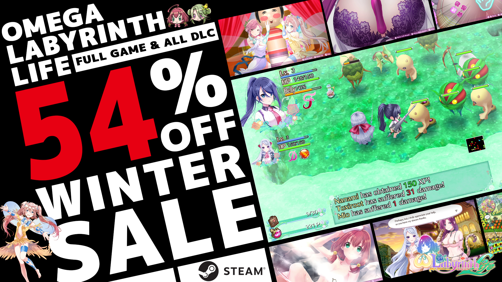Steam Winter Sale 2020! You can purchase Omega Labyrinth Life Full Game & All DLC at a 54% off price! Don't miss this wonderful opportunity!