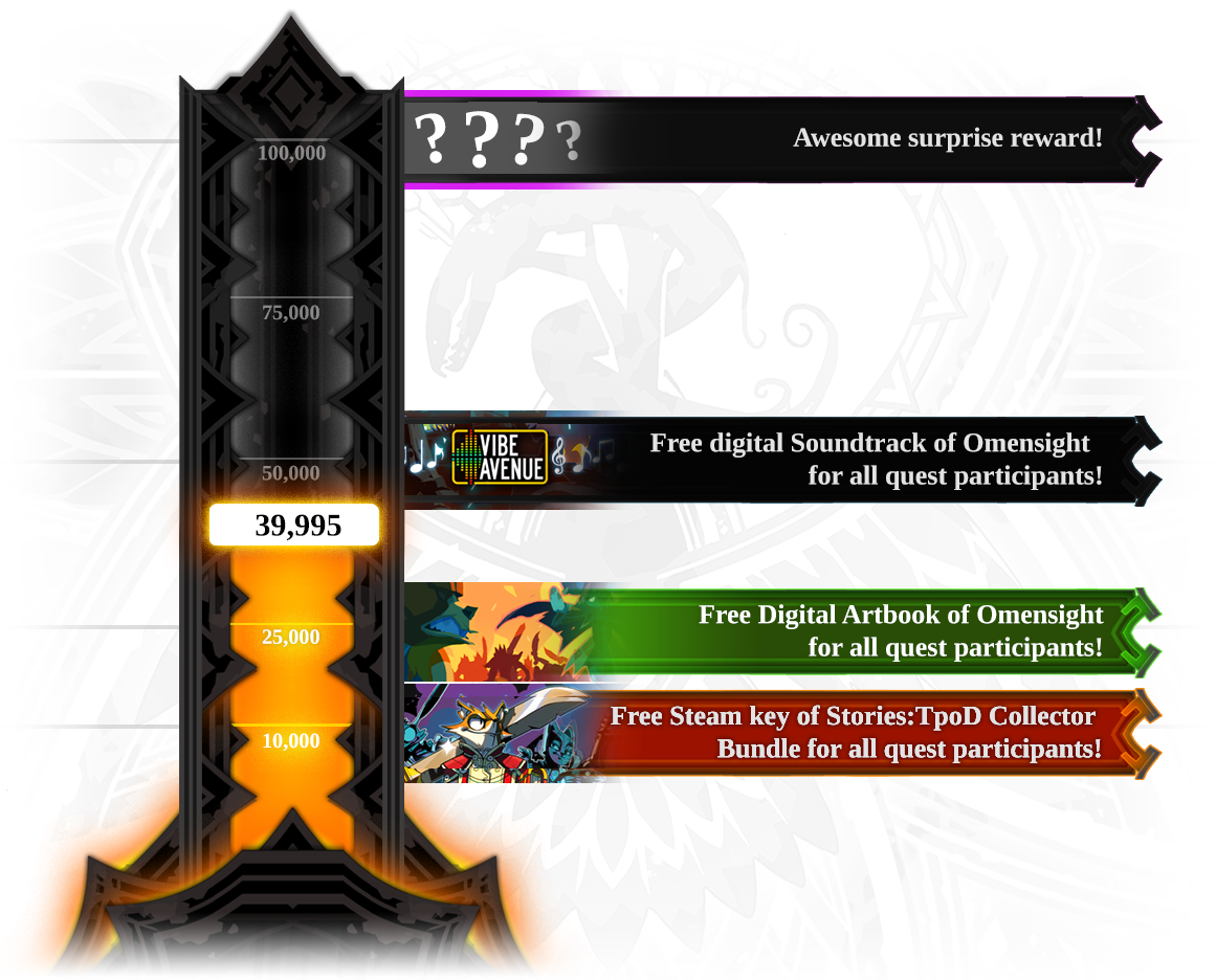 Each time we reach a new threshold, we unlock a special reward, starting with a free Steam Collector Bundle of Stories: The Path of Destinies at 10,000 wishes (which includes the art book and soundtrack)!