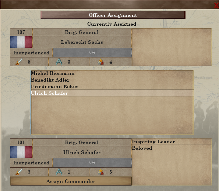 Commander selection used to only show unassigned commanders. Now there it is possible to toggle unassigned commanders or all, allowing you to simply trade officers instead of having to unassign and reassign in two distinct steps.