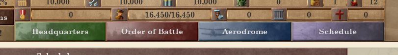 I've added a new sub-screen at the top of the screen alongside the Aerodrome button. This screen lets you schedule construction orders and artillery bombardments in advance, with the option of limiting them to a certain time. So, for instance, you can make units set wire only at night, and have them repeat it every night.
