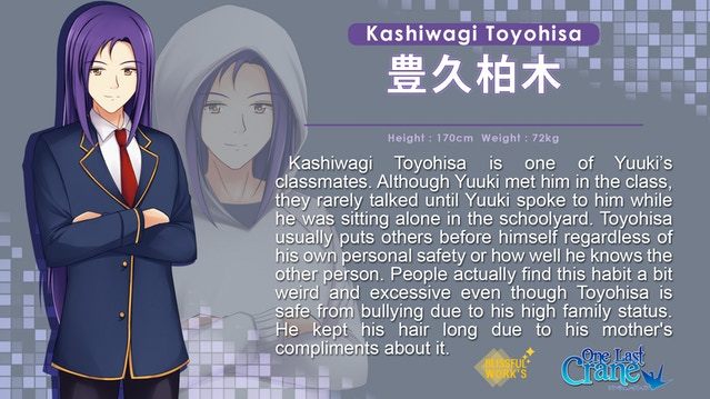 In this update, we also have a new character to be introduced. His name is Kashiwagi Toyohisa, created by Gilbert. Let's give him a warm welcome!