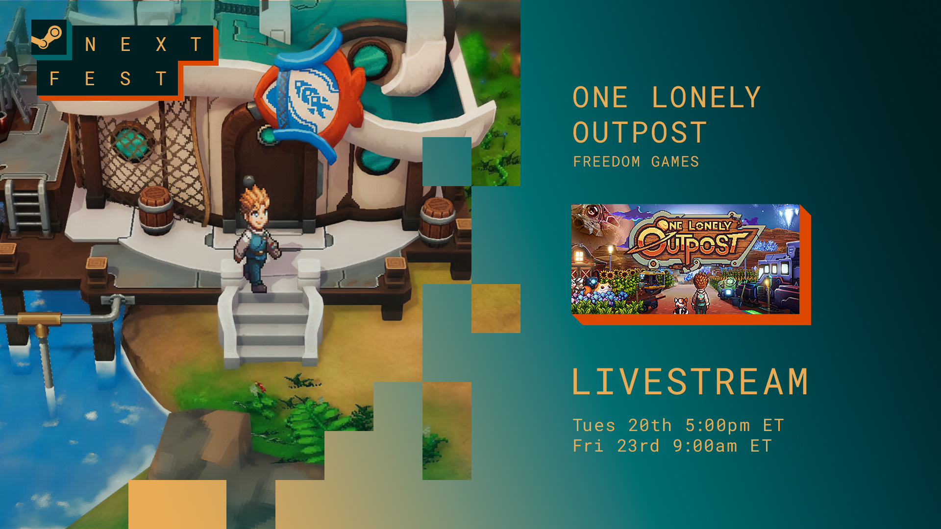 We're excited to be participating in the Steam Next Fest! Catch our livestream on Friday, June 23rd at 9 am EST where we will be showing off the latest demo.