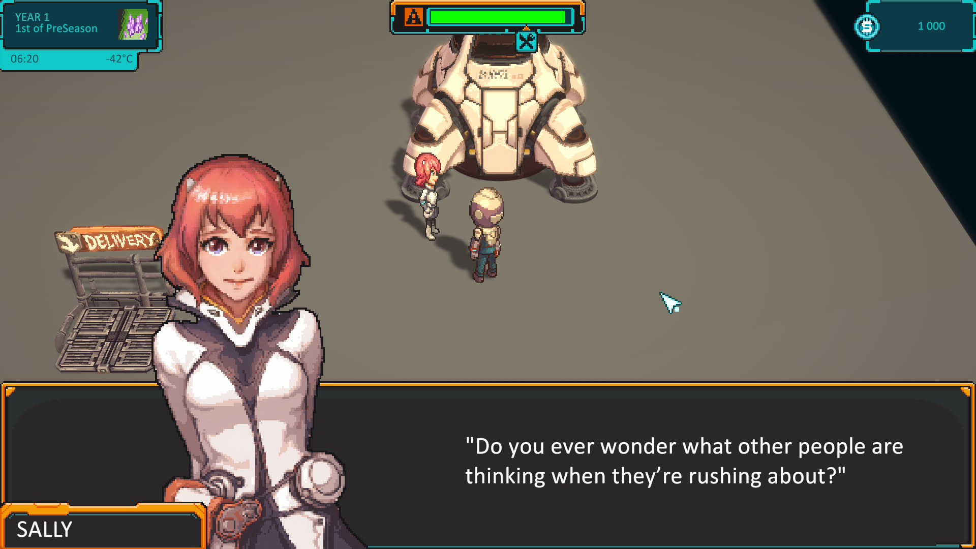 Sally has just landed at your outpost and is ready to become a part of the colony. Upon her landing, youâll need to welcome her and have a couple of conversations to help build your relationship with her. Sheâs always looking to learn about others, so you might get some odd questions, like this one: