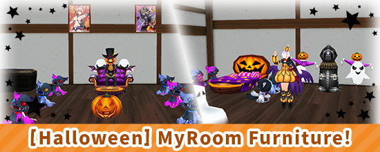 Seasonal furniture can be found featured in the spooky Halloween MyRoom Nyankoropon!