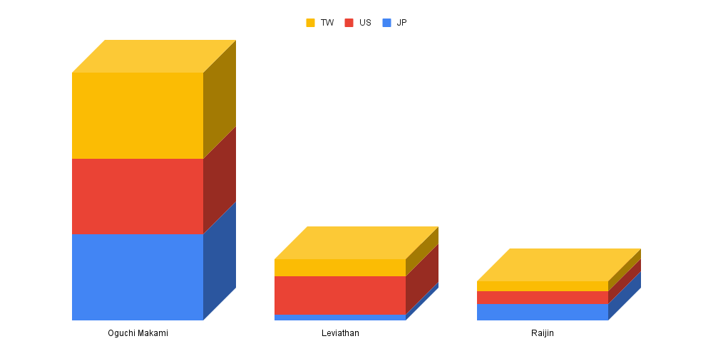 ※Some characters have been excluded. 1st:Ooguchi Makami 2nd:Leviathan 3rd:Raijin