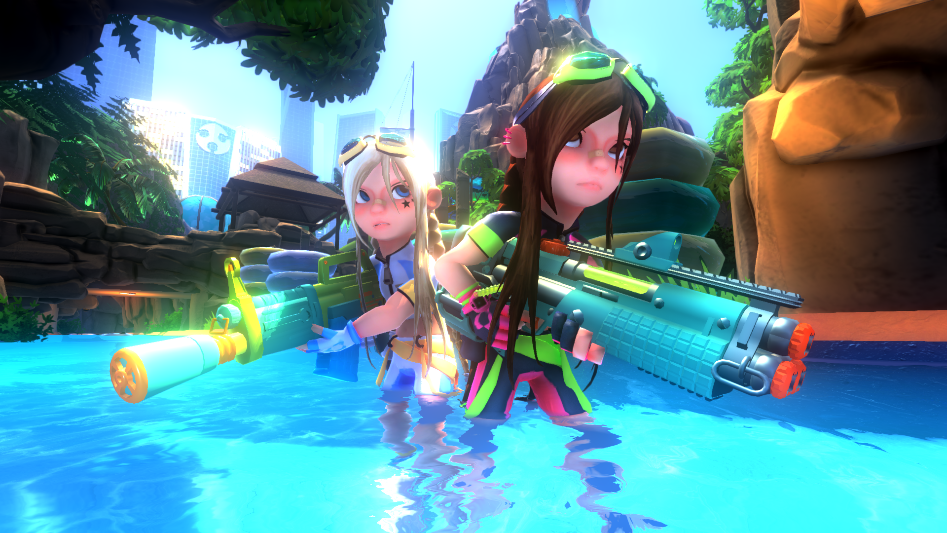 - the Huntresses dual crossbows - Pool Sweeper automatic water shotgun - Acid Hues bubble shotgun - The Harpoon - The Deck Clearer - Airbust MX automatic balloon launcher - The Splashling - the hurricane 90 model got updated