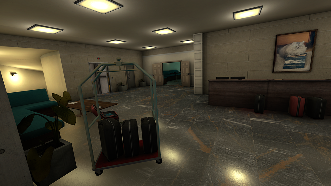 Our level designers are providing a glimpse of what the inside of one of the major buildings looks like on the upcoming 1.10 map. It looks like something happened to cause this area to have been evacuated quickly. Luckily, the photo of Mr. Falafel Fluff appears to be undamaged.