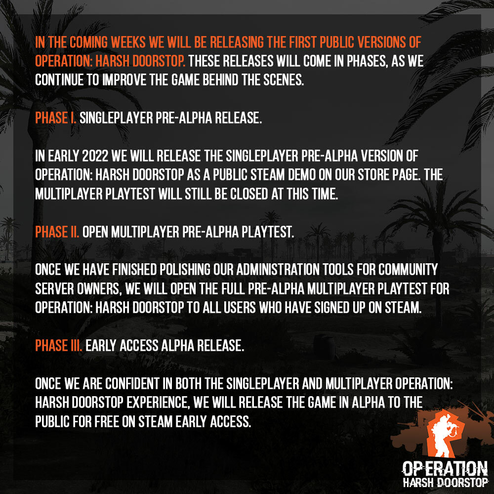 Welcome to the seventeenth devblog for Operation: Harsh Doorstop. In this update, we will be reviewing the work that the team completed in the month of December 2021.