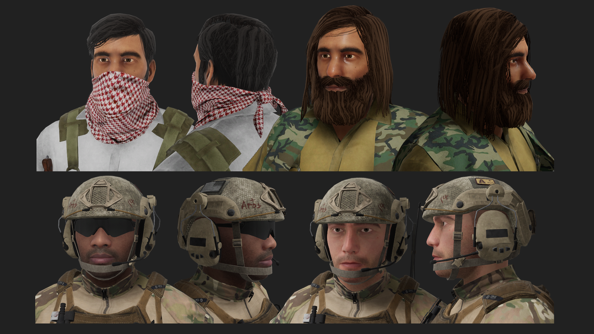 Some stylized shots of the new PMC and Insurgent character model variations showing them in more detail: