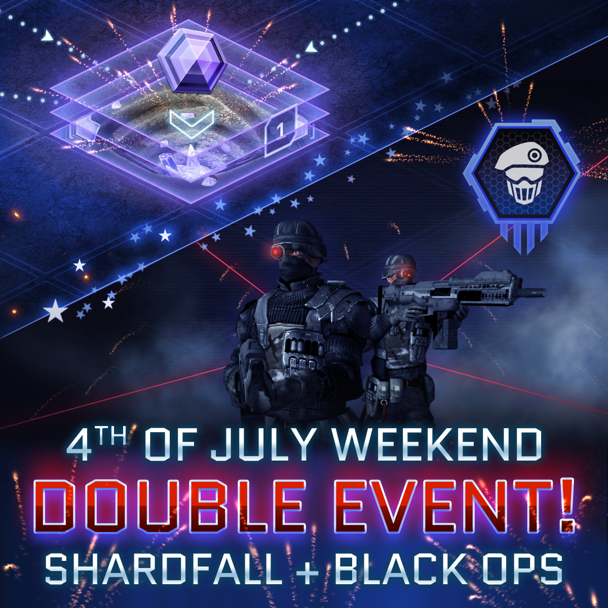 From now until Monday we're bringing you two more events, which includes Shardfall AND Black Ops to celebrate the holidays! Both of these events will run from now until Monday 6th July at 7AM (UTC).