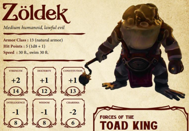 The first challenge will be the Zöldek warriors. They were faithful soldiers of King Brek, but when his castle sank beneath the waters of the Lake of Anna, they became a victim of a terrible curse that made them frog like humanoids. Their human side stayed in the past and most of them are amphibian beasts, however, it doesn’t mean that they don’t provide an excellent defense to the sunken castle. Their strength is in their numbers, a group of Zöldek can easily make your day hard with their rusty maces, so we highly recommend you come prepared!