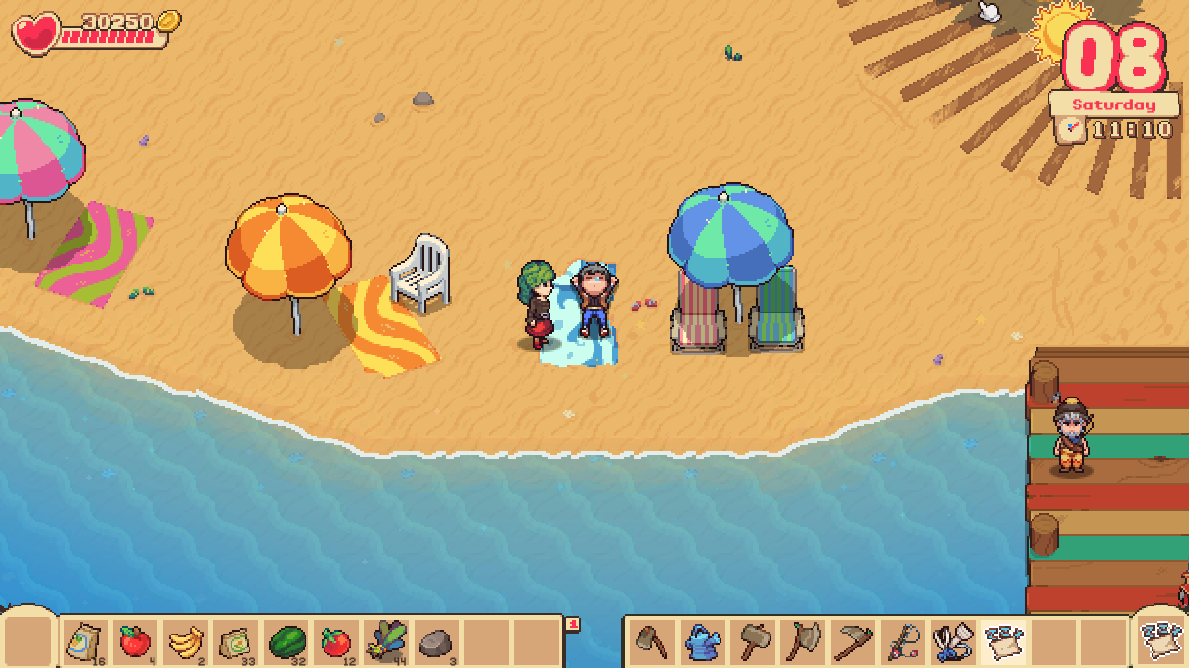 + Added the Summer season. + Added The Beach. + Added new types of trees: Palm Trees and Ype. + Added new characters. + Added an outline to objects that can be interacted with. + Added fireflies at night. + Added Orange Soda™. Buy it at the Beach and at Serge's Store. + Added placeholder introduction cutscene. + Added dynamic music to interiors and music variations. + Added signs to buildings with opening hours. + Added interactions with objects in the town. + When you first talk to someone they'll introduce themselves. + Reworked the character's routines. + Reworked interface design for menus, shops, and more. + Reworked the pricing of crops. + Improved art for the crops. + Improved art for the item icons. + Improved the apartment building in Orange Town. + Improved shop table at Brittany's House. + Improved entrance for the interiors.
