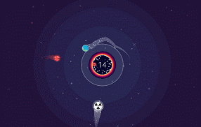 -Added two powerups to be activated upon collision. They are a distinct white and look different than all the planets. One is marked with a '+' sign and will award the player and extra three points. The other is marked with an atomic sign and will send a shockwave clearing the screen of obstacles briefly. These are ideas incorporated into my other games and I felt they could add a little variety here and work well without changing up too much of the gameplay.
