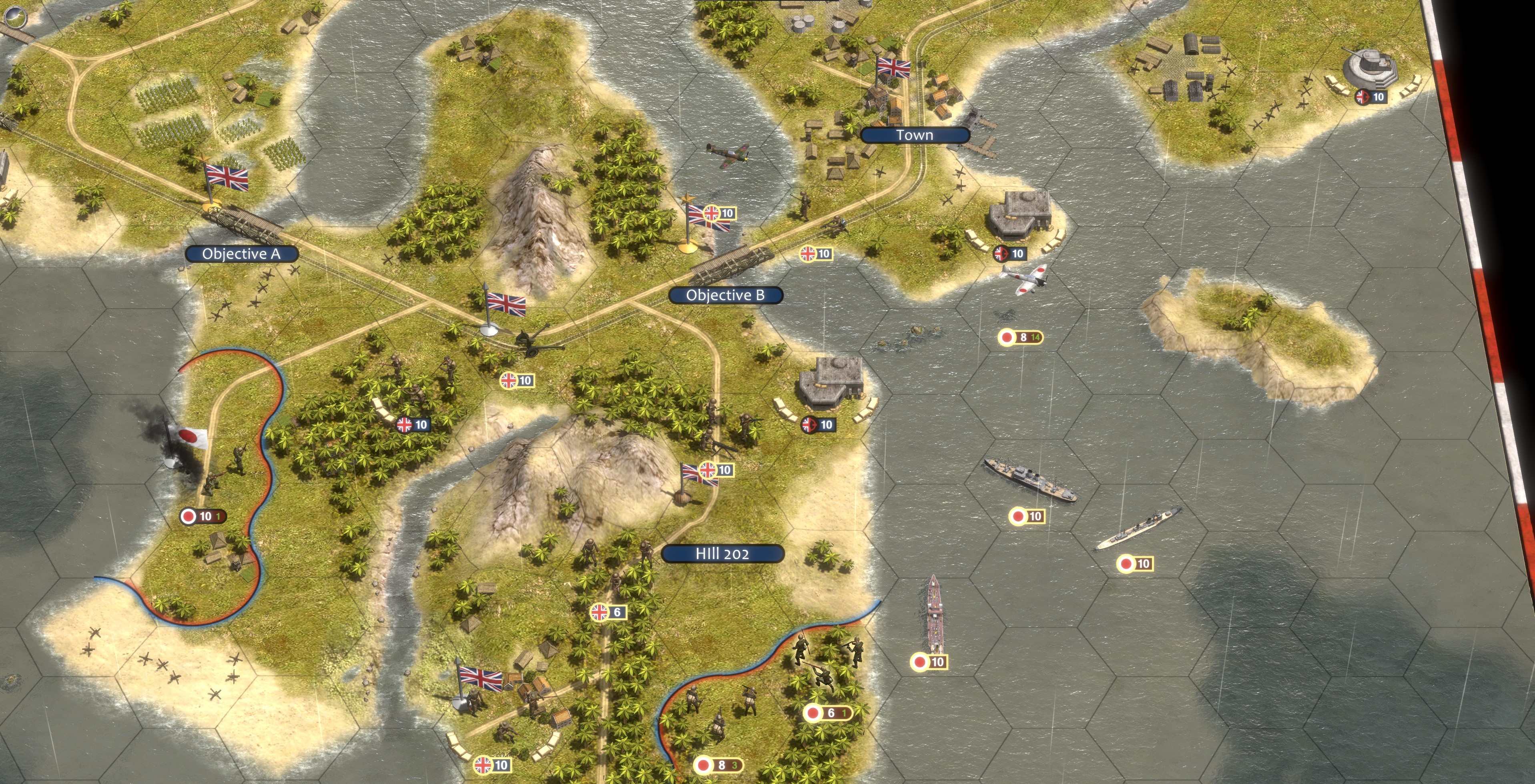 Peninsula Invasion (1942) – This fictional scenario occurs near the start of the Japanese invasion of Burma. This is a unique take on an invasion front that was historically mostly overland. The Japanese forces must cut a vital rail link whilst the British defenders must make the best use of the dense jungle to frustrate their attackers.