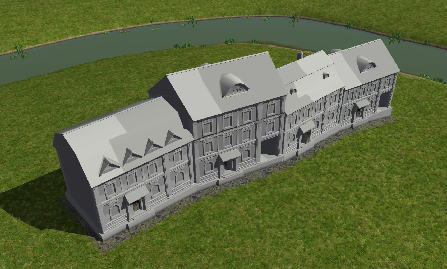 My personal favorite is rowhouses. They are not yet as meaningful as they would be in a finished game (basically they just provide high-density residences atm), also there's still no corner buildings, but you can already bend them into something cool-looking and organic to get that real 18th-century-town look. As a bonus you can have a shop on the 1st floor which can hold up to 8 slots of resources.