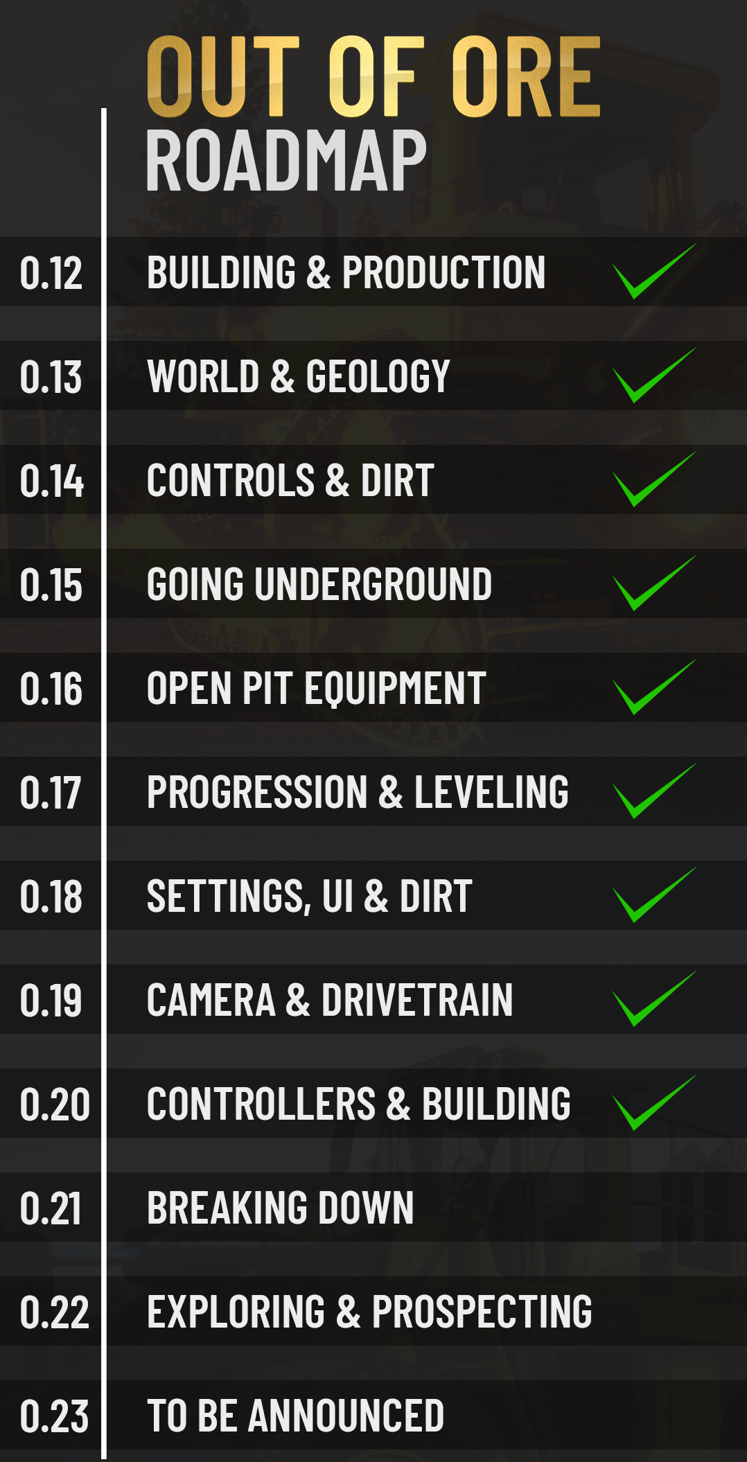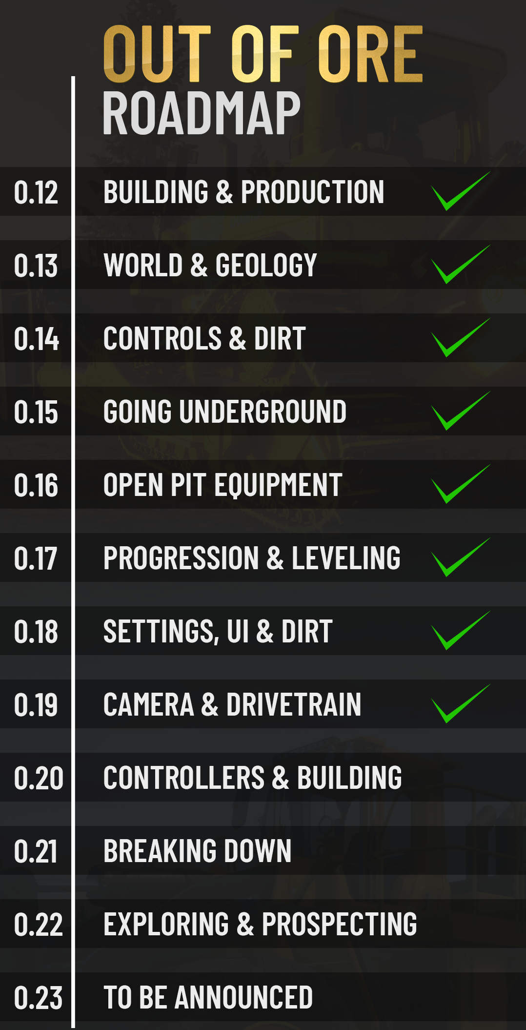 The upcoming update 0.19 "Camera & Drivetrains" is on schedule and everything is still going according to plan and we are testing everything at the moment, the update is estimated to drop on 29th October