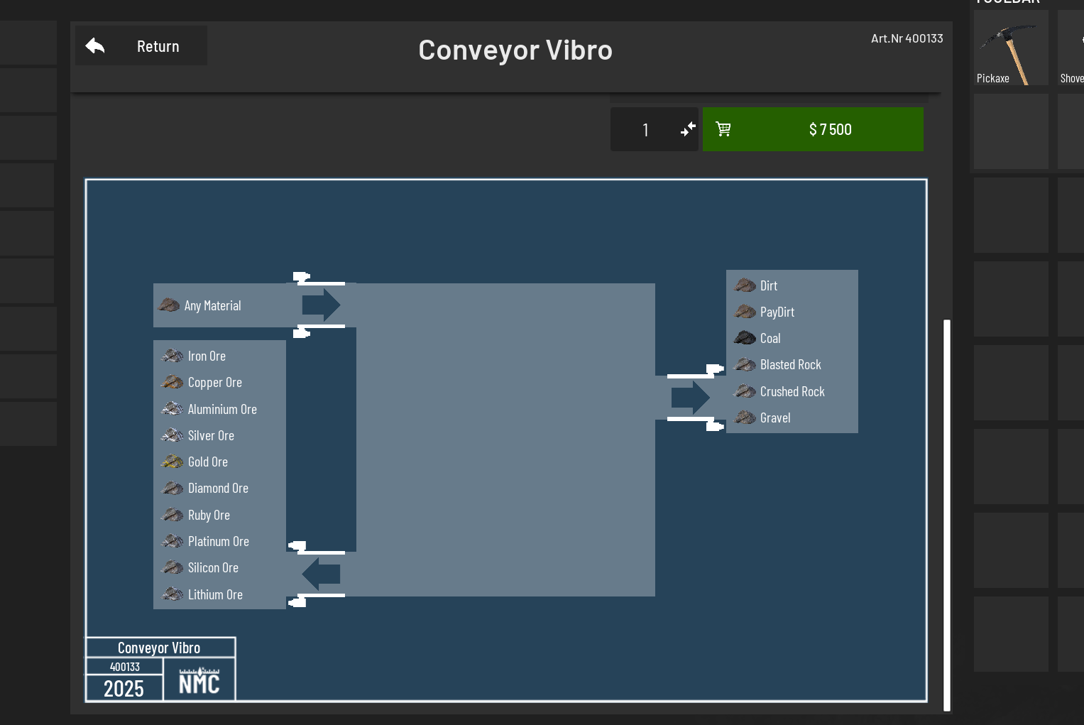 This week, we have continued to fix and test everything with both the UI and conveyors. We have also made a new tutorial and added product pages for each item (like normal online stores) so you get more info about each item.